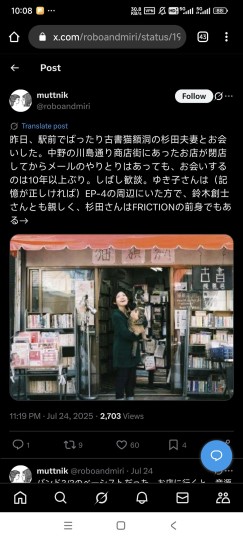 铃木卓尔拍摄的另一个起因,是被原著里的关于跟踪猫咪的观念所打动。 猫だけではありません、人にもまた空白の時間があります。 不仅仅是猫咪,人也有自己的“时间段”,有哭有笑有不想被其他人所看见的时间段。 わたしたちは、愛する人を絶えず見張っているわけにはいきませんし(そうすると本当のストーカーですが 我们不可能时刻关注着我们所爱的人(那样我们就变成跟踪狂了) 例えばその人の“過去”を見張るわけにはいきません。 我们也不可能,比如,窥探他们的“过去”,或是控制他们的未来。 原著作者浅生ハルミン写到,无论你多么爱猫,都会消失的。于是我想到,东京的变化,其实就如猫的消失一样,结尾铃木卓尔让猫不经意咬掉项圈走失,在内心已经明白结果了吧。而结尾最后一幕动画,是猫咪用屁眼对着镜头走了一段路后回头,一开始还觉得是制作动画的大山慶恶趣味,后来才想起有一种说法是猫咪只有对完全信任的人才会露出屁股,算是另类解读下埋藏着的一种无可奈何消逝却又温柔的回答。 影中「古書 猫額洞」现实于2014年5月10闭店。