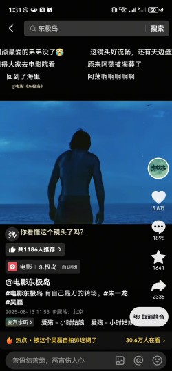 【问题⑥】经过评论区提醒补充,关于阿荡死后的一段剧情,我印象中先是阿赑带着阿荡游回来——拖上岸——回到家,在回家之后两个人躺在床上的戏份里,本来应该是朱一龙非常连贯的独角戏吧,但是似乎穿插了(1)阿赑背着没穿衣服的阿荡上岸,(2)阿赑背着穿了衣服的阿荡站在岸边,(3)阿赑独自站在岸边,的三组镜头。(我关于这里印象不太深了,可能说得有误,也可能把官抖的一些记忆插进来了,欢迎指正。)关于(1)阿赑背着没穿衣服的阿荡回家,这部分为什么要插在阿赑躺床上的回忆里,而不是正常衔接在他把阿荡拖上岸的镜头之后,不理解,这个情节也不是什么能够助推情绪的,没必要滞后剪辑。而关于(2)(3),官抖还专门放了个小视频出来问你看懂了吗……我第一次确实没看懂,因为即便是在IMAX大屏上,经过技术调整的“夜戏”也还是太暗了,根本分不太清楚阿荡到底有没有穿衣服,又都是阿赑情绪里回忆的插叙,与前一个(1)直接混淆了,搞得我不明白为什么同样的戏份插两次。后来明白了,第二次是穿衣服的,暗示的是海葬,但我又不懂了,这是个什么很难拍摄的情节吗?为什么要让观众猜测?为什么不能直接一两个镜头交代一下拍出来?既然导演已经把镜头对准吴磊饰演的“尸体”那么久,既然前面不乏各种血腥奇观,这个把弟弟和一兜子小玩具放海里有什么不能拍清楚的,为什么永远是这样该拍的不拍,情节让人看不明白;不该拍的拍一堆,节奏上拖拖拉拉。