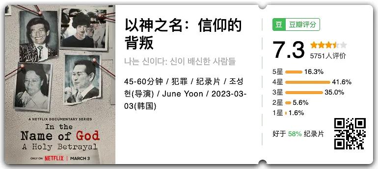 早在2023年,MBC电视台《PD手册》与Netflix联合制作,推出了以韩国四大邪教为主题的纪录片《以神之名:信仰的背叛》。