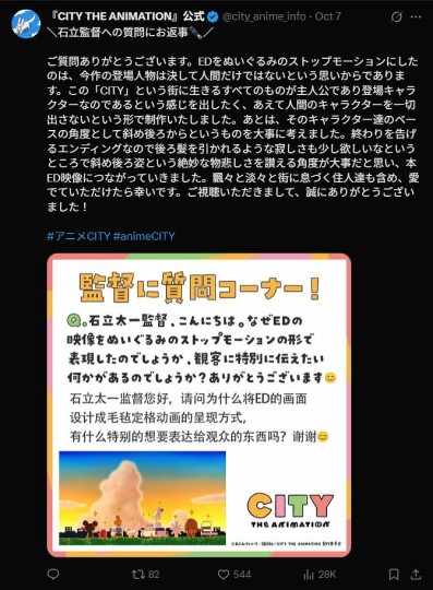 存一下《CITY》官方X发布的石立导演Q&A。