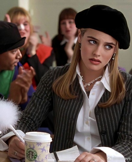《Clueless》还有一个了不起的特质,是它用20万美金造型预算,成为90年代引领青少年时尚潮流的佼佼者,并在此后30年里无数次被各种排行榜提及。 当全美国的少男少女都流行穿宽松T恤和格子衬衫时,如何表现“比佛利山庄富家女”结合“青春时髦高级时装”?法国造型师梅决定豁出去,“直接参考天桥走秀,构建一个不存在的世界。”